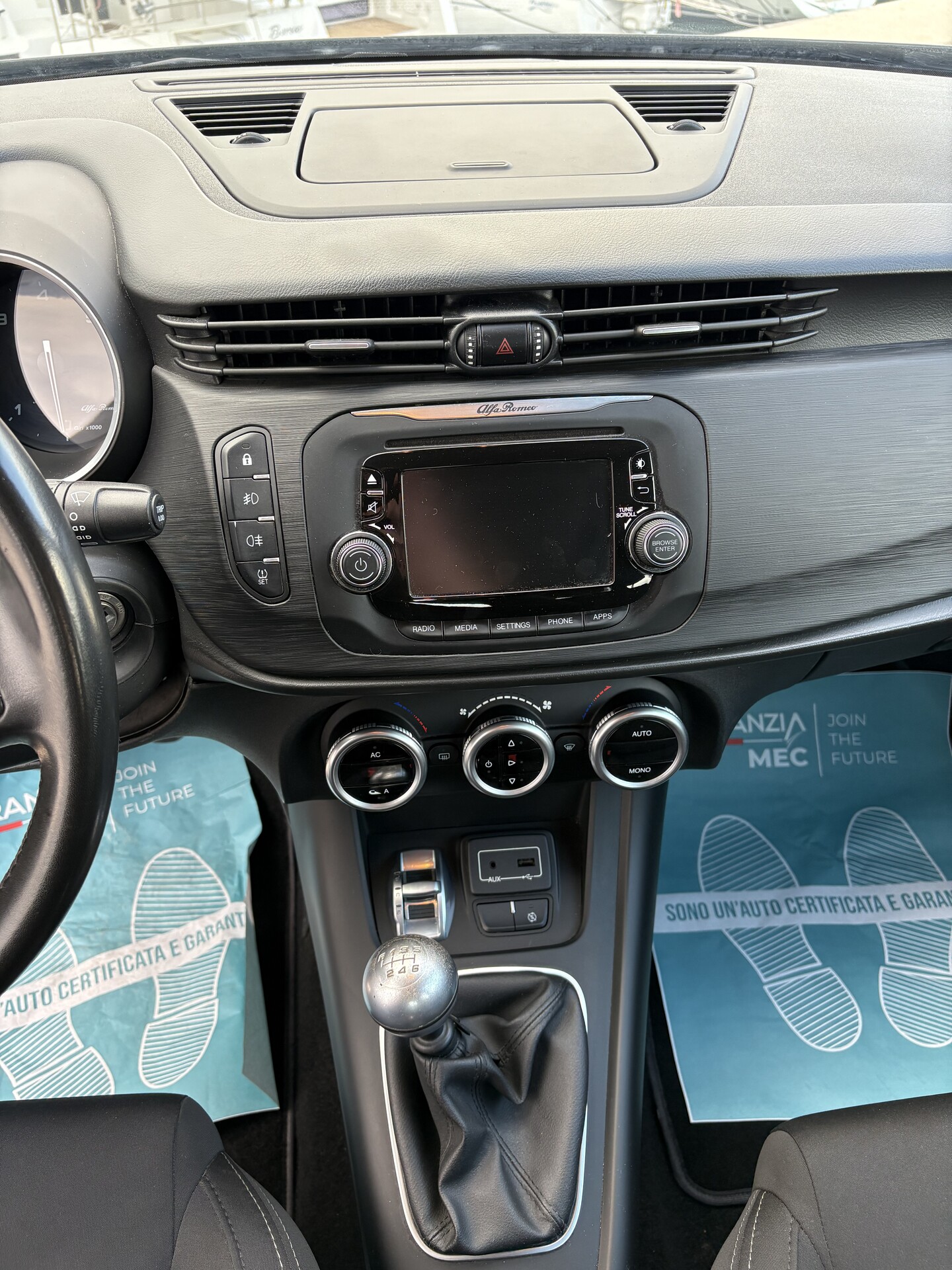 L'auto è dotata di numerosi OPTIONAL tra cui: sensori di parcheggio posteriori, luci diurne led, stop full led, faro lenticolare, quattro vetri elettrici, DNA alfa romeo con le tipiche tre modalità di guida, bracciolo guidatore, cruise control, clima automatico tri-zone, fendinebbia anteriori e posteriori, cambio manuale a sei marce, ruota di scorta con cric, cerchi in lega, specchietti elettrici, tappezzeria avvolgente total tessuto, comandi al volante in pelle multifunzione con bluetooth, infotaiment touch...